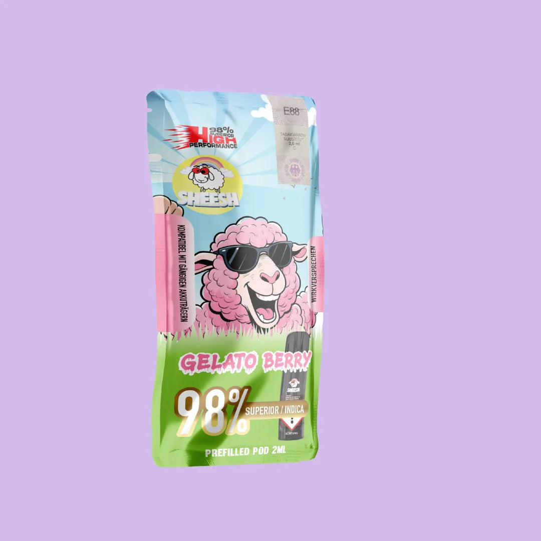 SHEESH Signature Pod – Gelato Berry vereint cremige Gelato-Süße mit einer hellen, fruchtigen Beerennote. Der Geschmack ist rund, smooth und wirkt extrem angenehm beim Ziehen – ideal für Genießer, die Süße und Fruchtigkeit perfekt balanciert mögen.